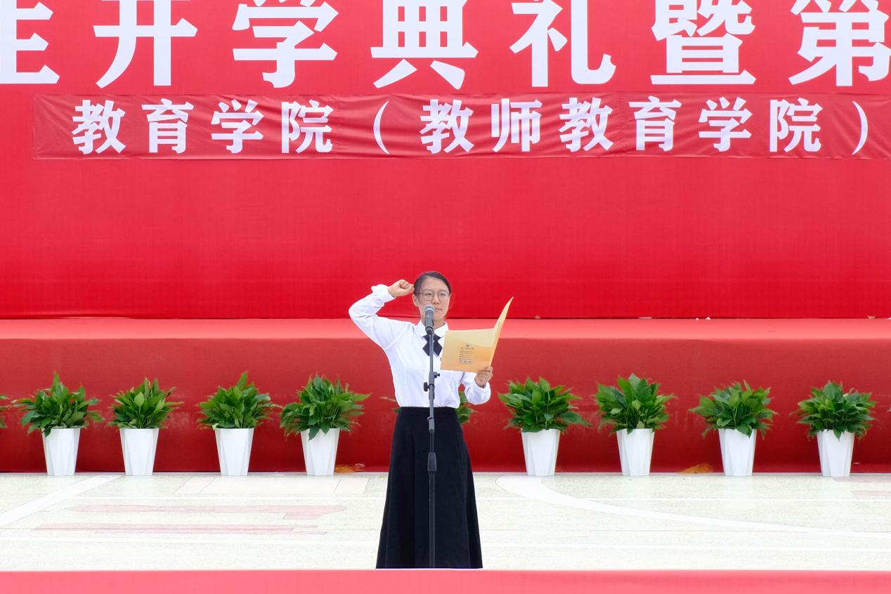 在学生代表刘昱伶的带领下,全体新生庄严宣誓,誓将立报国强国大志向,做挺膺担当奋斗者!