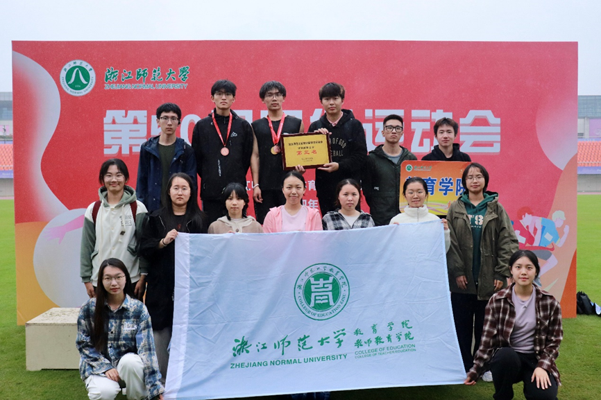 2024年10月26日,浙江师范大学第50届田径运动会圆满落幕。我院运动健儿们努力拼搏,奋勇争先,取得了甲组团体第三名的佳绩。此外,姚哲宇和余锦豪两位同学被评为“优秀***”。