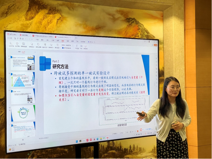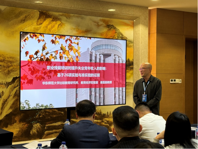 下半场报告由黄晓教授主持。南京财经大学的方超老师带来了题为“学前教育投入对教育人力资本积累的影响”的主旨报告,通过中国的数据分析了学前教育投入在提升教育人力资本方面的显著作用,特别在地区差异和财政投入的异质性方面呈现出明显的政策补偿效应。随后,华东师范大学的谢晨老师分享了基于26项实验与准实验的职业技能培训效果研究,指出在中等收入国家,工作场所培训和混合培训能显著提升失业青年的收入,且这种影响在长期尤为显著。随后,华南师范大学的温忠麟老师介绍了教育实验中基于项目的方差分析方法,详细说明了如何在实验设计中使用项目为分析单位,并将其与传统的被试间设计进行比较,提升实验设计的适用性和分析的科学性。