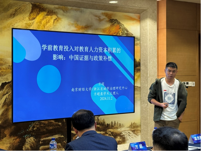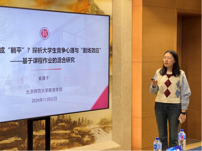 上半场报告由王占军教授主持。来自华东师范大学的王成梁同学以“MetaClassroom:建构编程教育的新样态”为题,探讨了如何通过虚拟课堂创新编程教育模式,强调了三维学习进阶(3DLP)理论在构建个性化学习体验中的作用。接下来,北京大学的于磊同学带来了“地方人才引进政策对家庭教育投资的影响”的报告,研究表明,地方人才引进政策显著增加了家庭在义务教育阶段的校外教育支出,尤其是在校外补习方面。扬州大学的刘鑫同学分享了“混龄教育中绘本教学对中班幼儿语言发展的研究”,分析了混龄教学对幼儿表达性语言能力的积极影响,特别是在“大带小”模式中表现明显。北京大学的郑翔睿同学通过一项随机干预实验,探讨了分数激励和减少评教题目数量在提升学生评教参与率方面的作用,发现分数激励效果更显著。浙江大学的陈加铿同学报告了高校职务科技成果赋权改革对新质生产力的推动作用,通过准自然实验数据表明,赋权改革显著促进了高校科技成果的有效转化。北京师范大学的崔馥千同学以“内卷”与“剧场效应”为主题,研究了大学生在学业和职业选择中的竞争心理,揭示了“内卷”现象对学生内部动机的消极影响。华中师范大学的朱楠老师介绍了针对小学数学学习困难儿童的“认知策略教学”干预策略,通过“Solve It!”认知策略有效提升了这些学生在数学问题解决方面的表现。吉林大学的王天骄老师探讨了班主任的学科背景对学生学业表现的影响,发现英语和数学教师担任班主任时对学困生成绩和班级氛围的提升更为显著。上半场的最后一位发言人是同济大学的王奕俊老师,他分析了延迟中考分流的教育效应,研究表明,适当延迟分流时间有助于学生的学业表现提升。