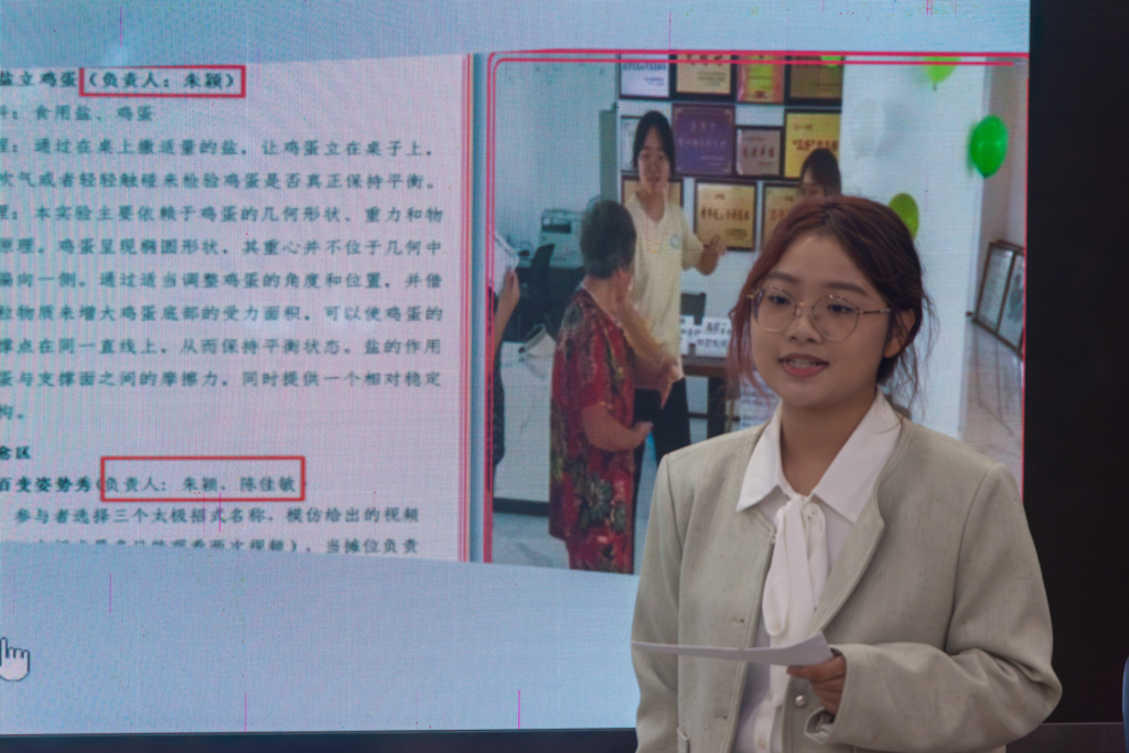 以“新质赋能智分类,绿心筑梦兴家园”为主题,梁祺乐同学实地探访宁波明州生活垃圾焚烧发电项目,深入了解并进入学校实地宣讲此项目,为普及环保知识积极献力;以“实地调研、初心故事、文献查阅、形成报告”为序,曹嘉璐同学与团队共同响应国家“双减”政策,在实践基础上,结合专业学习,为创新教育提供理论化新思维。参加本次先进个人评比的选手们各显其长,展现出教育学子知行结合的良好品质。