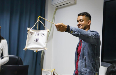 秋灯在中国有“寄托幸福、留住丰收喜悦”的寓意,搭框架、贴秋叶、盖红印、糊灯纸,制作秋灯的步骤也充满了中华传统手工的古典韵味。在中国学生的指导下,留学生制作秋灯的技法愈发娴熟。当所有的秋灯被点亮,大家彼此欣赏各自的作品,不仅沉浸在成功制作秋灯的喜悦之中,更借由制作秋灯,更加深刻的理解了中国的“秋”文化。