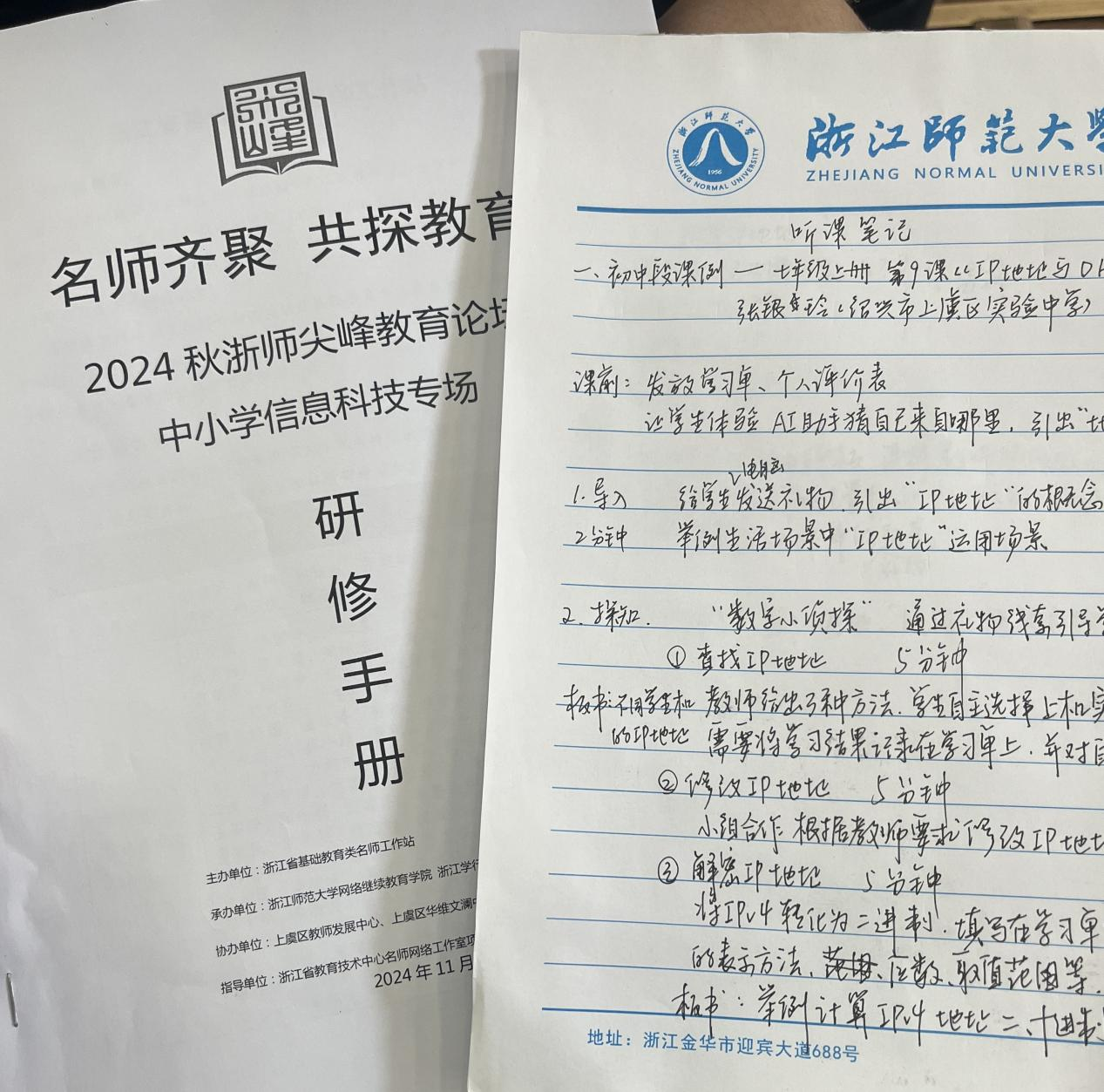 见习日程过半,同学们来到了2024年秋浙师尖峰教育论坛中小学信息科技专场,聆听两位优秀青年教师的精彩课例,感受教育的魅力与智慧。