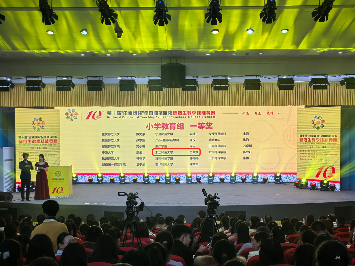 11月29日-12月1日,第十届田家炳杯全国师范院校师范生教学技能竞赛在浙江师范大学举行,本届大赛共吸引了来自全国250所学校的1831名选手参赛,参赛院校数与选手数均创历史之最。决赛阶段共有来自155所院校的509名选手到场参赛,经过激烈角逐,教育学院岳冰娴同学最终荣获小学教育组一等奖。