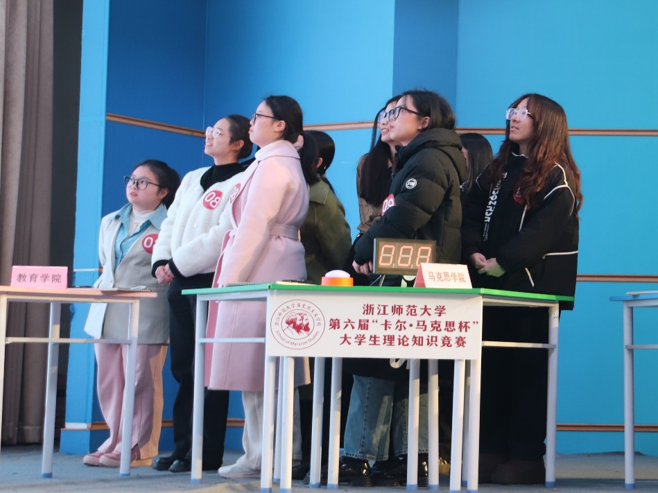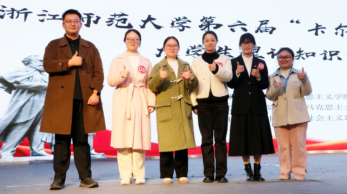 12月16日,浙江师范大学第六届“卡尔·马克思杯”大学生理论知识竞赛决赛在大学生活动中心二楼报告厅举行。决赛阶段共有来自10个学院的50名选手到场参赛,经过激烈角逐,由牟欣悦、陈洁、陆易涵、赵卓昱、柴植晓5名同学以及指导老师冯奕程老师组成的教育学院团队,最终以总分98.4分荣获一等奖,创造了我院在该赛事校赛中的历史最佳成绩。