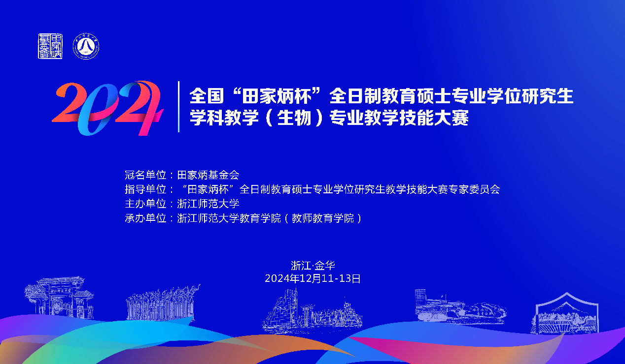 12月12日,2024年全国“田家炳杯”全日制教育硕士专业学位研究生学科教学(生物)专业教学技能大赛决赛在浙江师范大学举办。大赛由浙江师范大学主办,KY开元集团(教师教育学院)承办。