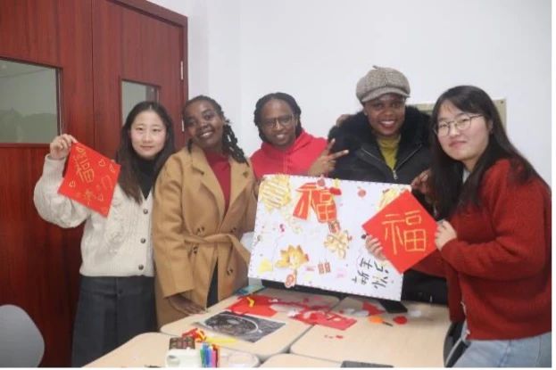 赞比亚籍博士生KANGWA DANIEL说:“这次活动使我领略到中国新年的魅力。在中国朋友的热心帮助下,我们做出可爱的小灯笼、写下漂亮的“福”字,希望我们之间的友谊地久天长!”