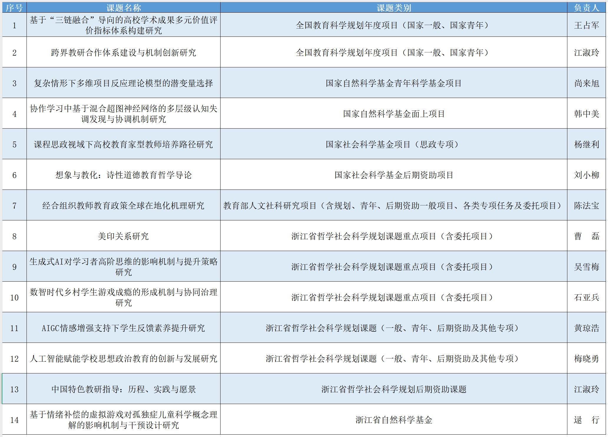 获得教育部第九届高等学校科学研究优秀成果奖、浙江省教育科学优秀成果奖7项。