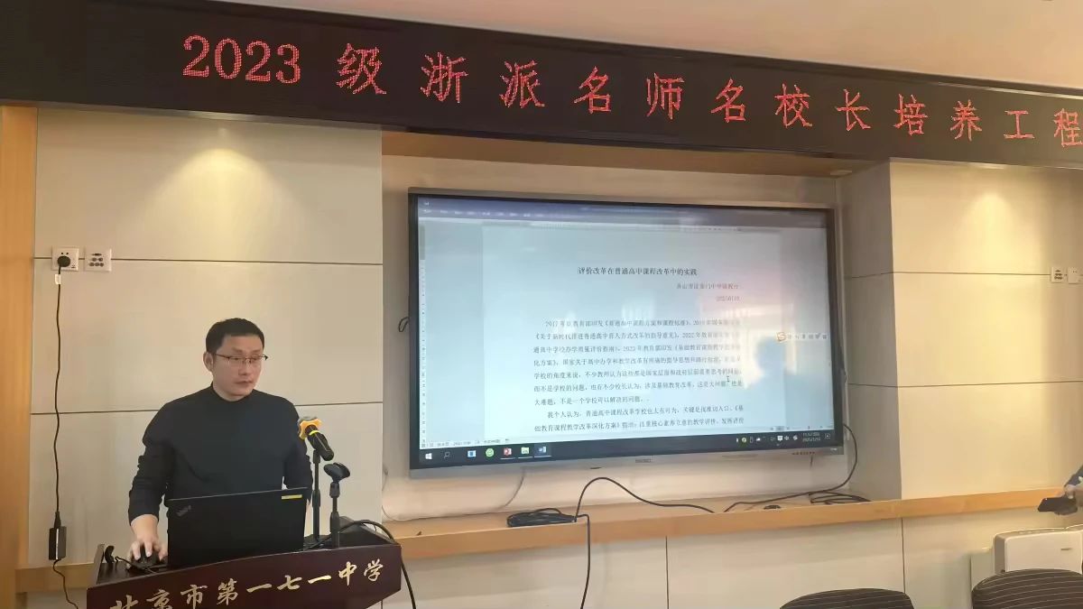 1月10日上午,2023级浙派名师名校长培养工程普通高中浙派名校长项目北上研修活动在北京市第一七一中学拉开帷幕,在简短参观完校园后,研修活动正式开始。