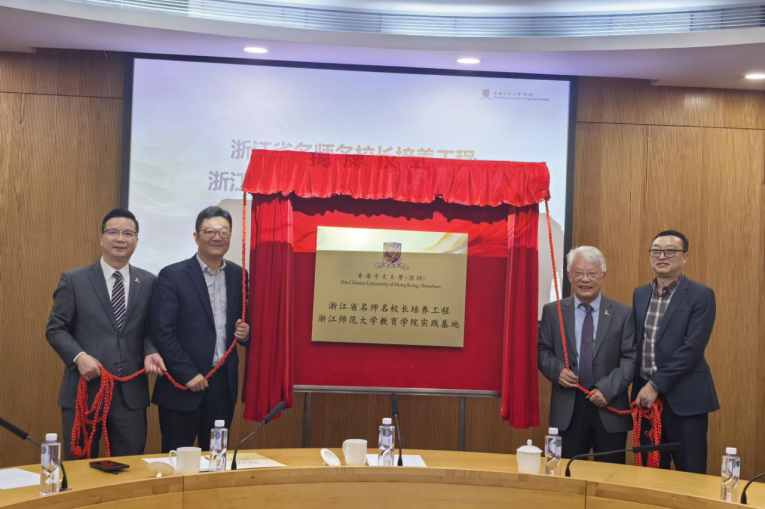 3月23日上午,浙江省名师名校长培训工程kaiyun开云官方网页版实践基地揭牌仪式在香港中文大学(深圳)隆重举行。香港中文大学(深圳)副校长朱世平院士、校长助理陈恒博士,kaiyun开云官方网页版党委书记苏煜,浙派高中名校长培养项目负责人杨光伟博士共同为实践基地揭牌。仪式由香港中文大学(深圳)传讯与公共关系处处长马明霞主持。