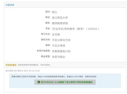 收到推免录取的通知