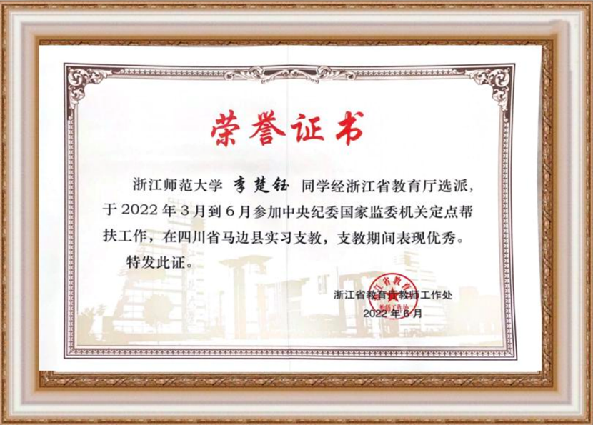 支教期间获奖证书