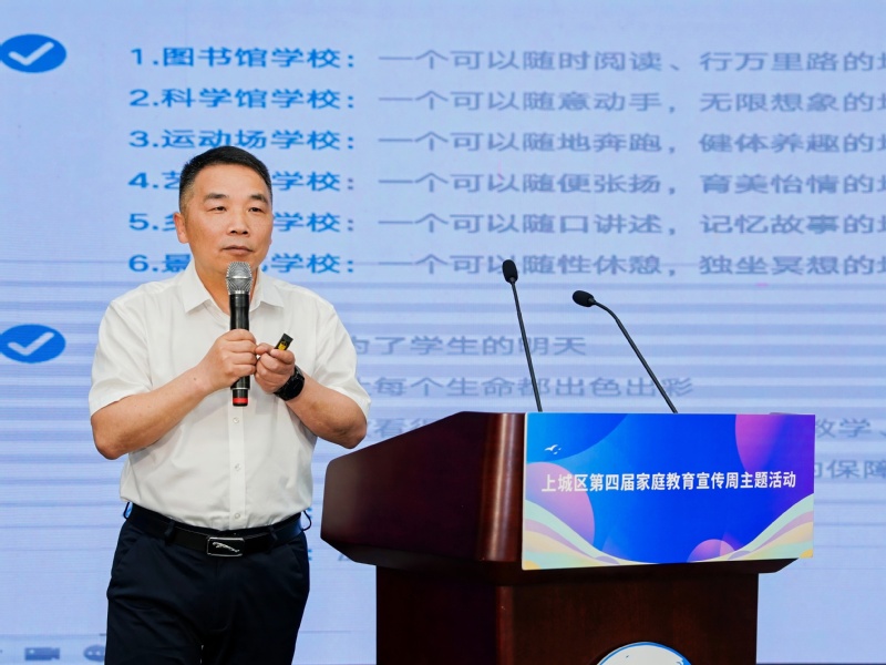 在学校德育品牌交流环节,杭州笕成中学校长张艳作了题为“筑梦育德:培养新时代‘成真少年’的笕成实践”报告,宁波三中副校长陈小波作了题为“史鉴初心·智创未来——劳动教育双螺旋育人模式探索”报告,温州市第八中学校长欧素鸯作了题为“甘雨苏万物  泉水育英才”报告,嘉善县实验小学副校长王燕作了题为“赋新‘六旗’时代价值  架构‘红色德育’体系”报告,金华市外国语学校德育处主任程巧炜作了题为“以德育力量,育时代新人——金华市外国语学校‘力量德育’品牌介绍”报告,镇海中学台州分校书记姚宏敏作了题为“探索自砺德育  探索自砺德育”报告。6所中心基地校都立足于各自的学情、校情,通过多年持续的探索实践,培育、孵化出各具特色的学校德育品牌,构建起行之有效的学校德育工作体系。浙江省锦绣江山外国语学校党支部书记、校长王华兵还围绕自己最新出版的专著《做看得见的德育》,就“学校德育实践成果转化”做了专题分享。