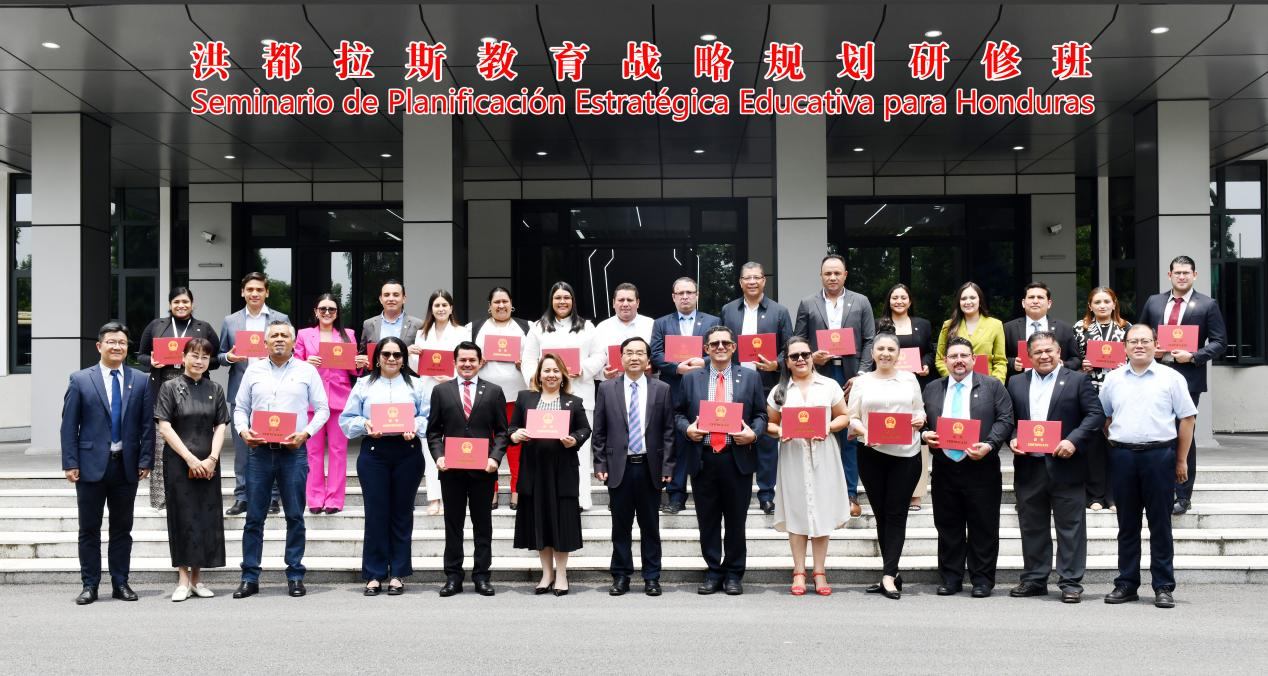 张根福代表浙江师范大学向圆满完成研修任务的学员表示热烈祝贺,并高度评价本次研修项目取得的积极成效。他指出,本次研修项目构建了“理论研修+实地考察+文化体验”三位一体的培养体系,不仅为学员打造了深度研讨与多维互动的优质平台,更启发了双方对中洪教育合作路径的创新思考。张根福衷心期望双方能够持续深化中国与洪都拉斯教育领域国际合作,携手破解发展难题,共同推进两国教育事业实现跨越式发展。