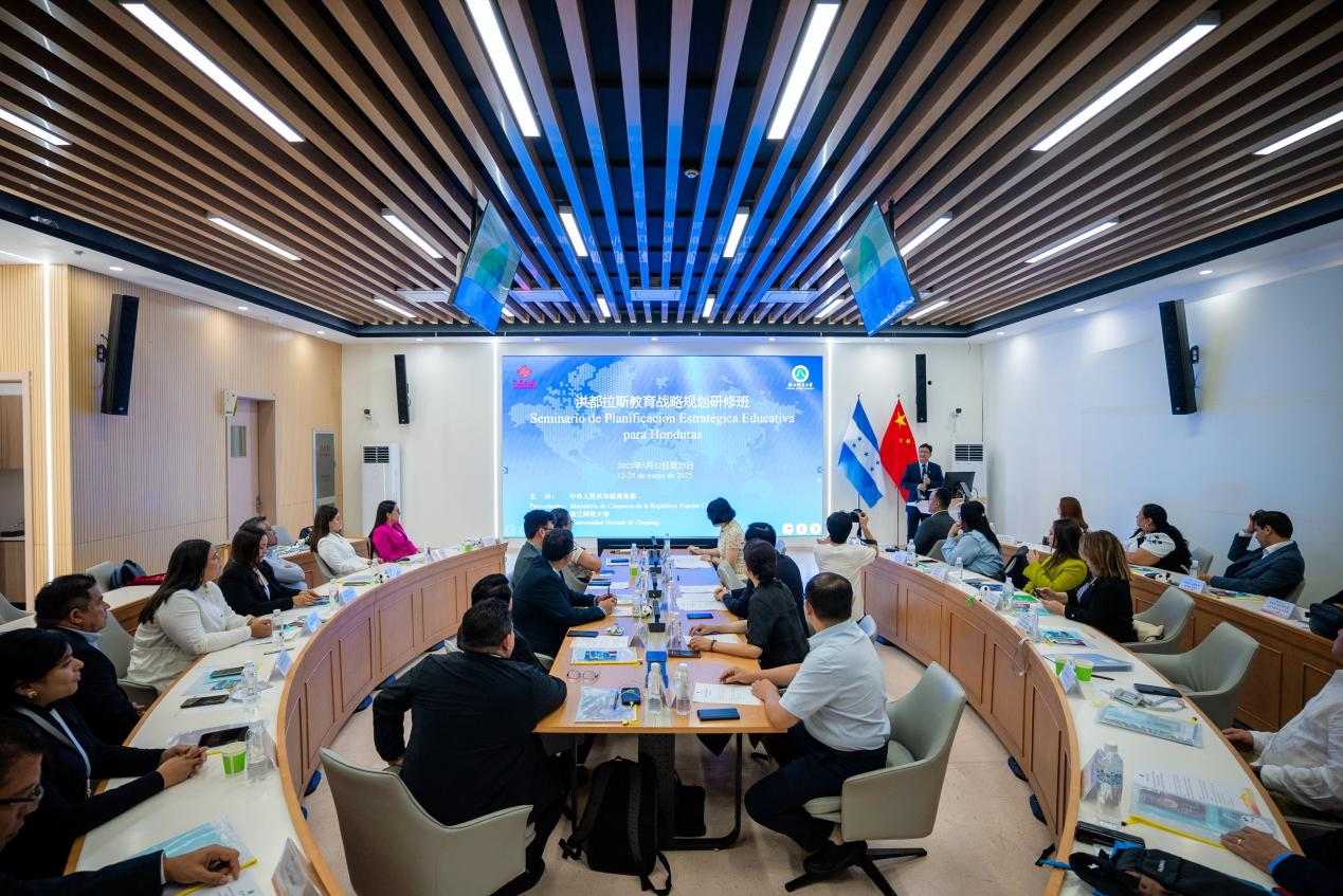 5月25日,由中华人民共和国商务部主办、浙江师范大学承办的“洪都拉斯教育战略规划研修班”结业仪式,在浙江师范大学教师教育实训中心举行。浙江师范大学校务委员会副主任张根福、浙江师范大学校友工作与发展联络办公室主任周红霞、KY开元集团党委委员、国际化办公室主任陈殿兵出席结业仪式,来自洪都拉斯的25位教育管理学员,浙江师范大学国际处、教育学院相关负责人参加活动。结业仪式由KY开元集团党委书记苏煜主持。