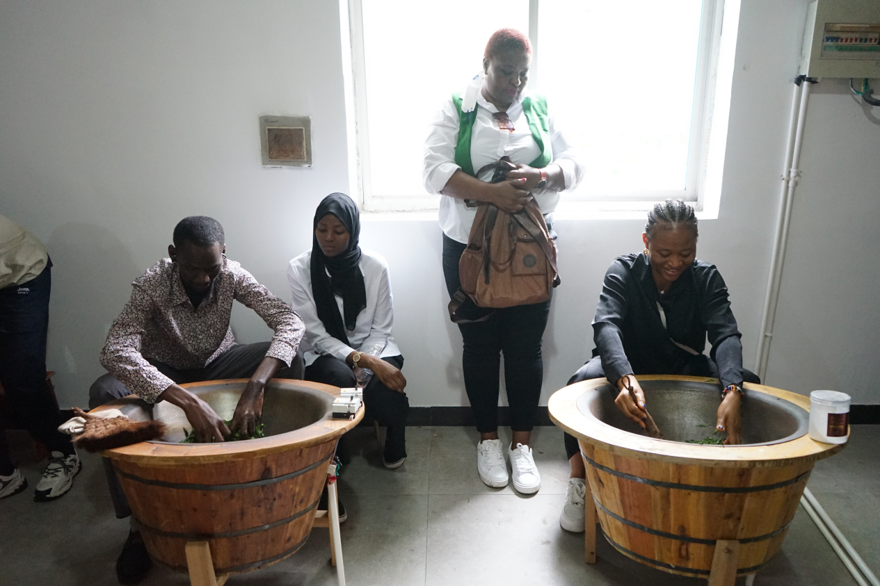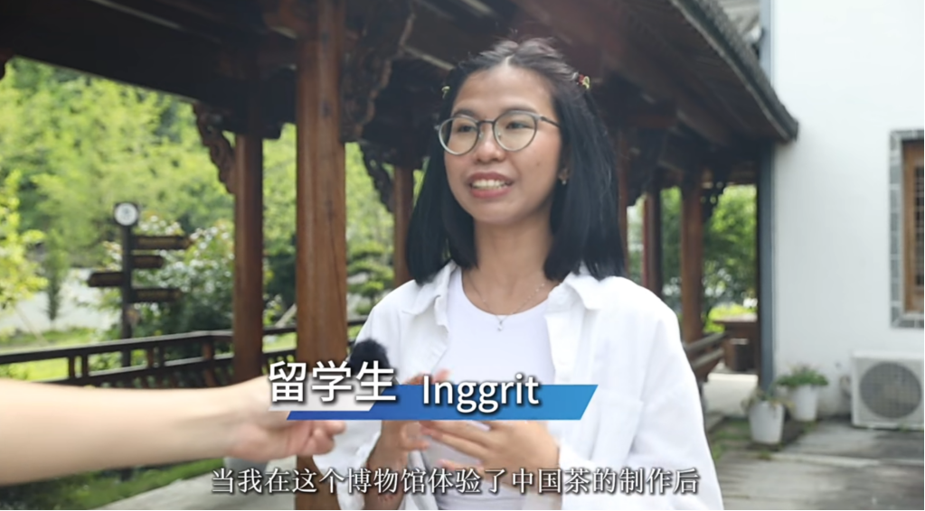 午后,一行人前往开化龙顶茶文化园。作为中国茗茶之乡,开化龙顶茶以“干茶翠绿、茶汤杏绿、叶底嫩绿”的“三绿”特征闻名,其制作技艺被列入浙江省非物质文化遗产。留学生们深入茶园采摘鲜叶,体验“杀青、揉捻、烘焙”等传统工序,并在茶艺师指导下冲泡品茗。印度尼西亚留学生Inggrit表示:“当我在这个博物馆体验了中国茶的制作后,我感到非常愉悦。一杯好的中国茶需要通过漫长的制作过程,我相信只有慢工出细活,才能喝到非常好的茶。”