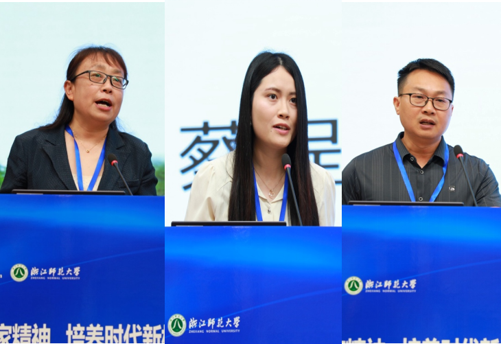 开幕式后,研讨会进入“崇德尚教·协同育人——主题报告与学术研讨”环节。在浙江师范大学党委统战部常务副部长、心理学院院长、田家炳德育研究中心德育神经科学实验室主任孙炳海,教育学院副院长王占军,校友办主任周红霞的主持下,浙江师范大学校务委员会副主任李伟健、南京师范大学道德教育研究所所长冯建军和“时代楷模”、台江县民族中学终身名誉校长、浙江师范大学1977级杰出校友陈立群先后做主题报告。