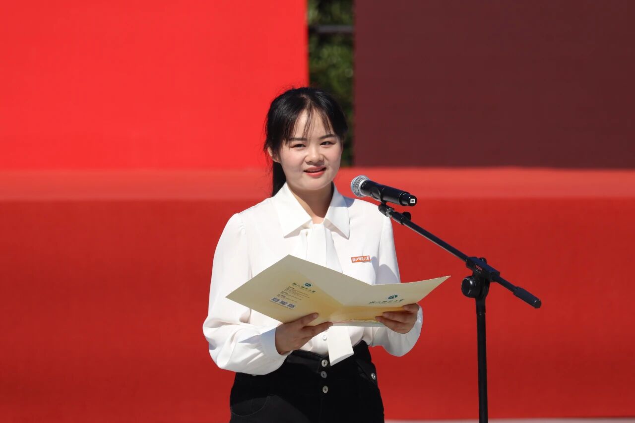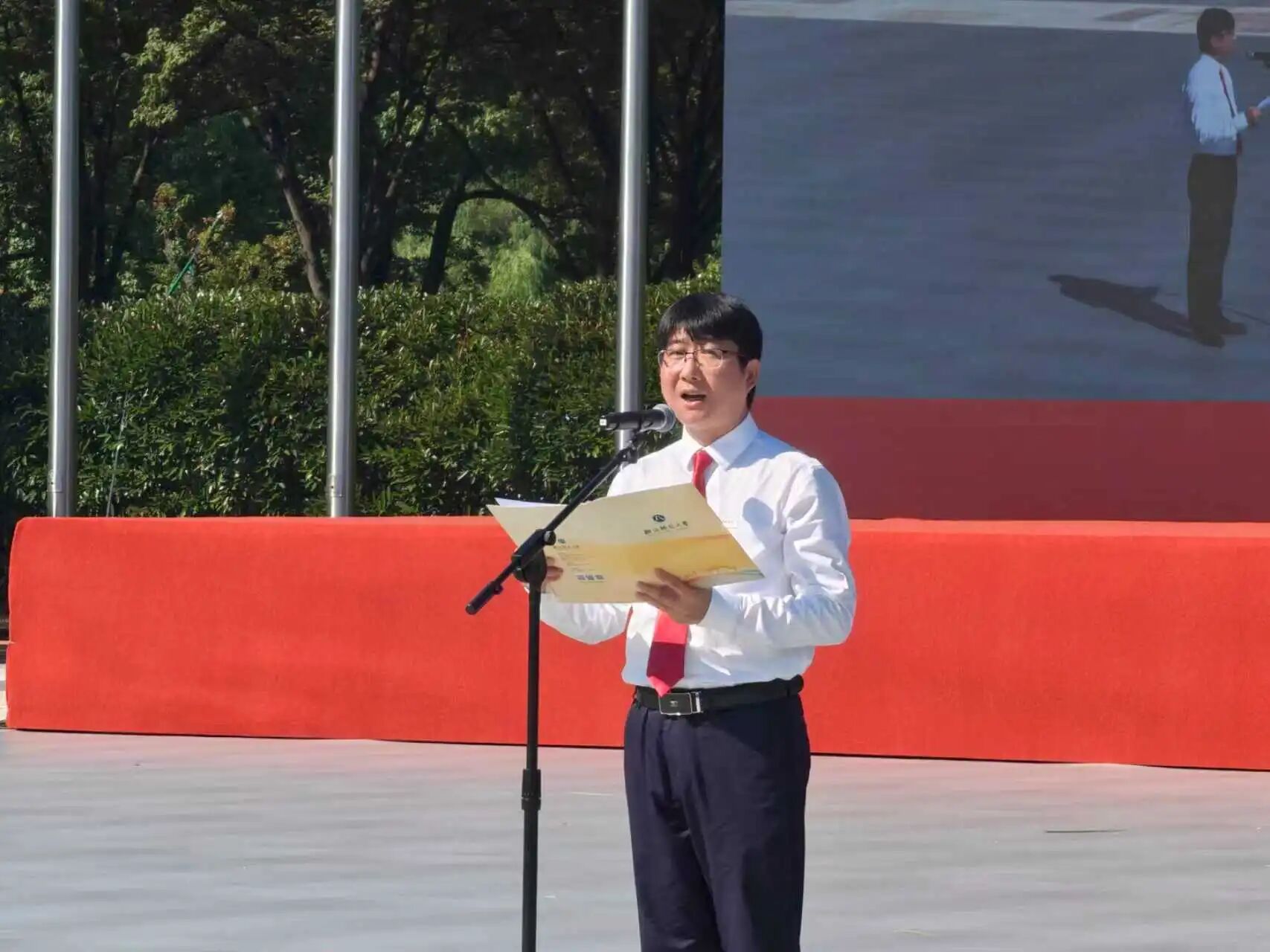 来自学科教学(数学)251班的新生代表黄昱诚怀着激动的心情,向母校及辛勤付出的领导、老师表达最诚挚的感谢。他代表新生发出三点倡议:要以浙师为壤,在平台之上育成长;要以教育为志,在实践之中践担当;要以初心为炬,在坚守之中明方向。展望未来,他号召教育学子能以教育家精神为指引,在广阔的教育天地中,书写青春华章,绽放万丈光芒。