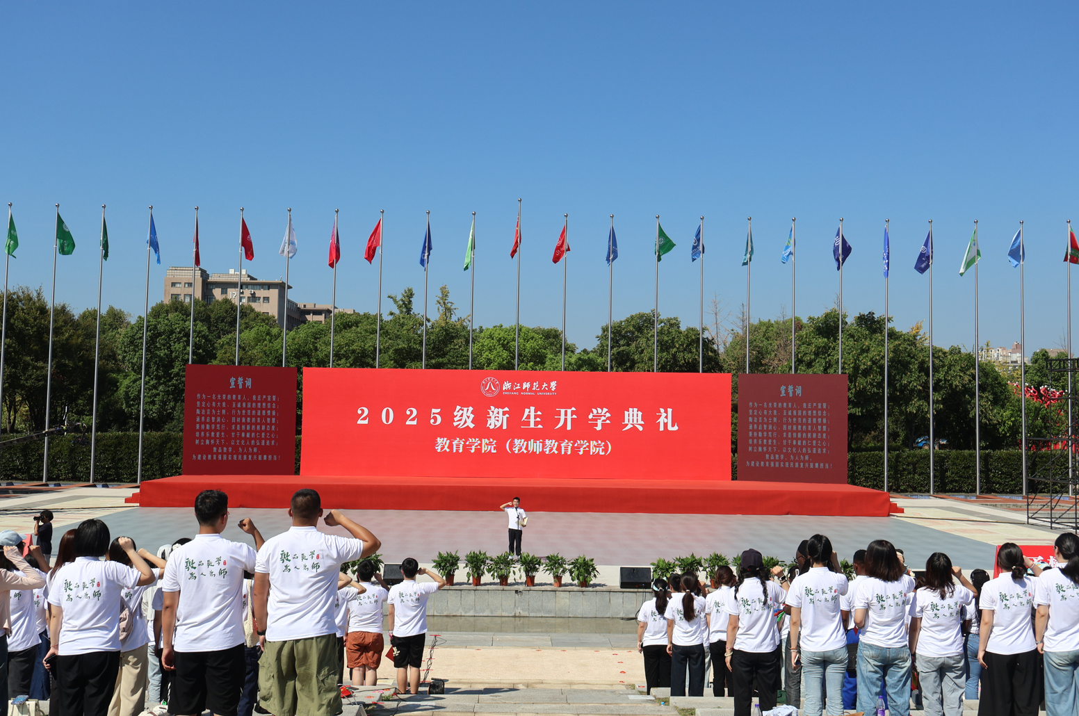 最后,在本科新生教技2501班徐亦朱同学的带领下,全体新生肃立宣誓,誓言传承教育家精神,为建设教育强国实现民族复兴挺膺担当。