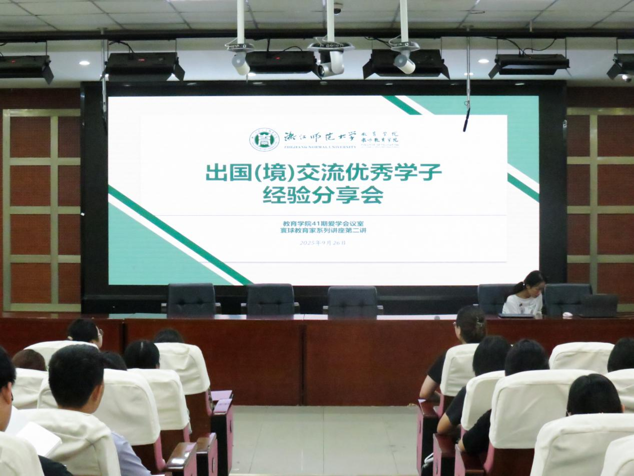 为拓宽学生全球学术视野,助力新生科学规划发展路径,9月26日,kaiyun开云官方网页版举办了第41期“爱学会议室”暨“寰球教育家”系列讲座第二讲——出国(境)优秀学子经验分享会。活动邀请了多位具有海外学习经历的学生进行交流,包括课程与教学论2023级硕士研究生吴倩,课程与教学论2024级硕士研究生王思璇,小学教育2023级本科生梁祺乐、王子绚、曹嘉璐、钱舒畅,教育技术学2023级本科生陈轩雅,小学教育2024级本科生乌英秀,以及教育技术学2024级本科生杨旭轩。全体2025级新生参加了本次分享会。