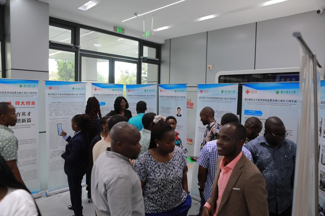 仪式结束后,嘉宾与学员共同参观了“商务部比较教育硕士项目十周年成果展”。展览以图文并茂的形式,系统回顾了项目十年来的发展历程与主要成果,全面涵盖项目的整体定位与教育援外使命、融合理论与实践的教学体系与师资力量,以及学员在学术研究、文化体验与文体活动中的全面发展。展览还通过杰出校友故事,展现毕业生在全球各领域取得的突出成就,并以详实数据与成果集中体现项目十年来的积极影响与卓越贡献。同时,展览对项目未来发展蓝图进行展望,擘画出深化内涵、拓展合作的新画卷。