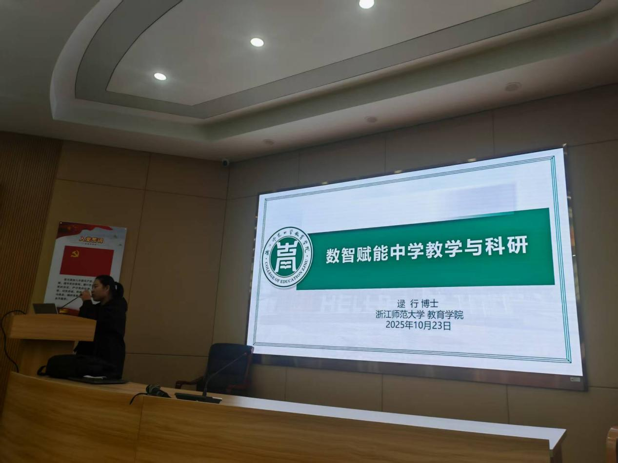 10月23日,外派专家韦正航、逯行博士赴浙师大附属萧山二中开展教师科研能力专项调研与指导。在深入把脉教师科研现状与需求后,逯行博士作了题为《数智赋能中学教学与科研》的专题讲座。讲座立足教师核心素养发展,结合典型案例,系统阐释了如何运用数智工具优化备课、提炼成果、撰写论文及升级课题,为教师实现教学与科研的深度融合、双向赋能提供了清晰路径与方法支撑。