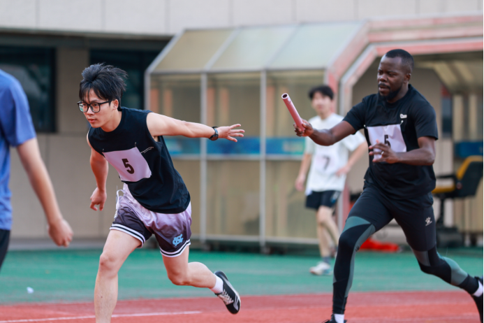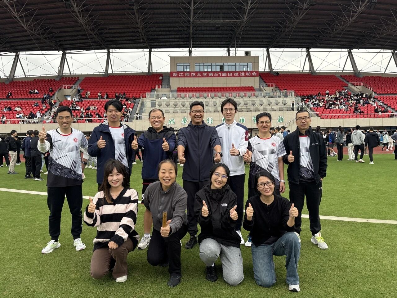 走下讲台,换上运动装,教育学院的老师们在赛场上同样光彩照人!在本次运动会中,教工组捷报频传:10x60米混合接力斩获第七,龚伟老师勇夺男子 1500米第六,邓若男老师喜获女子 800米第八。他们用速度与力量展现了课堂之外的别样风采,身体力行地诠释了“完全人格,首在体育”的育人理念。