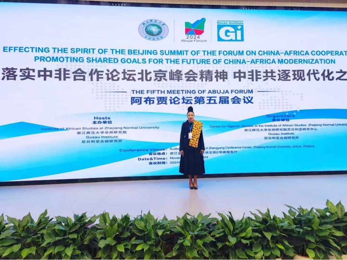 2015年,在尼日利亚的加油站,王倩与几位中国老师偶然相遇。彼时已通过银幕上的中国功夫和随处可见的“中国制造”对东方国度心生向往的她,在这场邂逅后走进孔子学院,从“你好”开始,一步步走进汉语的世界。2016年,凭借出色的成绩,王倩收到了浙江师范大学的录取通知书,并买下了一张飞往中国的单程票。从此,这位在尼日尔河畔长大的女孩,在浙江金华的婺江边扎下了根。“读书九年,获益匪浅。”王倩对浙师大的感激之情溢于言表。“成长”——王倩用这个词概括自己在浙江九年的蜕变。她不仅完成了从本科到博士的学业进阶,更从对未来充满迷茫的少女,成长为坚定自信的女性。如今,她不仅是学者与传播者,更是中非青年交流的活跃代表,先后参与“中非未来领袖对话”“世界青年和平大会”“绿色低碳创新大会”等重要国际活动。