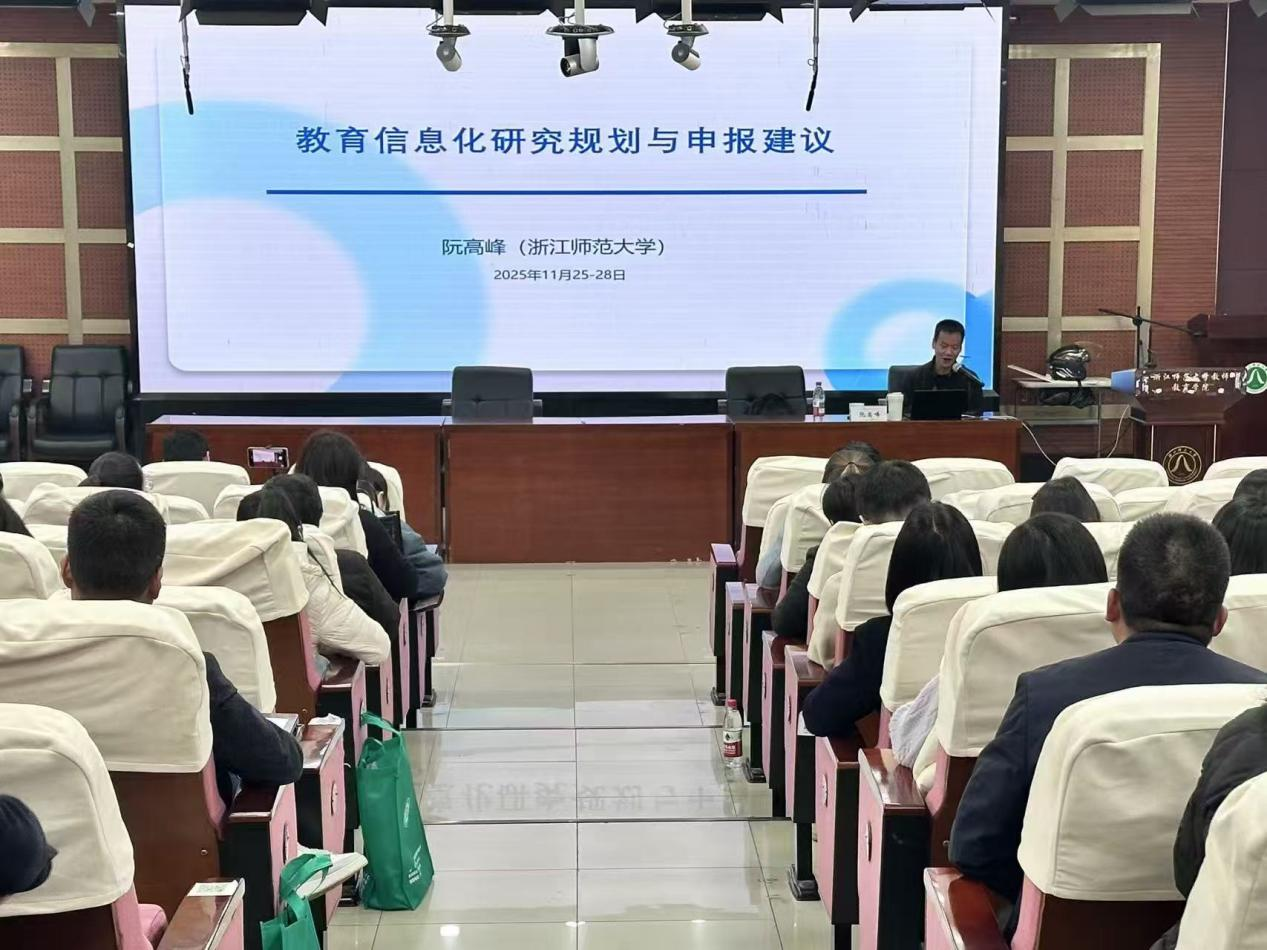 简短而庄重的开班仪式后,项目负责人、浙江省科普教育研究院副院长阮高峰博士作《教育信息化研究规划及申报建议》专题讲座。阮老师结合自身长期参与教育信息化项目指导与评审的丰富经验,围绕“课题来源、研究开展、申报规范”三大核心问题展开系统讲解。阮老师首先从研究基础谈起,强调在立项前必须系统梳理学校数字化建设现状、资源条件及区域发展需求,在充分调研基础上形成清晰的问题链。他指出,教育信息化课题不仅应关注技术应用,更应聚焦教学改进、管理优化与学习成效等核心议题,以确保研究的实践价值与推广意义。随后,他就“什么是课题研究”展开深入阐释,逐项解析研究目标的凝练、研究内容的组织、研究对象的界定等关键环节,提醒学员避免主题泛化、概念模糊等常见问题。在研究实施部分,阮老师通过典型案例,系统展示了如何科学设计研究路径,包括方法选择、阶段推进、数据采集与成果规划等重要内容。在申报书与论文撰写方面,阮老师从结构规范、论证逻辑、语言表达等维度提出具体建议。通过对典型案例的剖析,他指出了申报材料中常见的逻辑断层与内容重复等问题,并提供了具有操作性的改进方案,帮助学员深入理解科研表达的规范要求与严谨性。整场讲座内容充实、逻辑清晰,既有理论深度,又具实践指导意义。参训教师普遍认为,本次讲座深化了他们对教育信息化研究的理解,系统提升了课题规划与论文写作能力,为后续三天培训奠定了扎实基础,也为在学校推进教育信息化建设增强了信心。