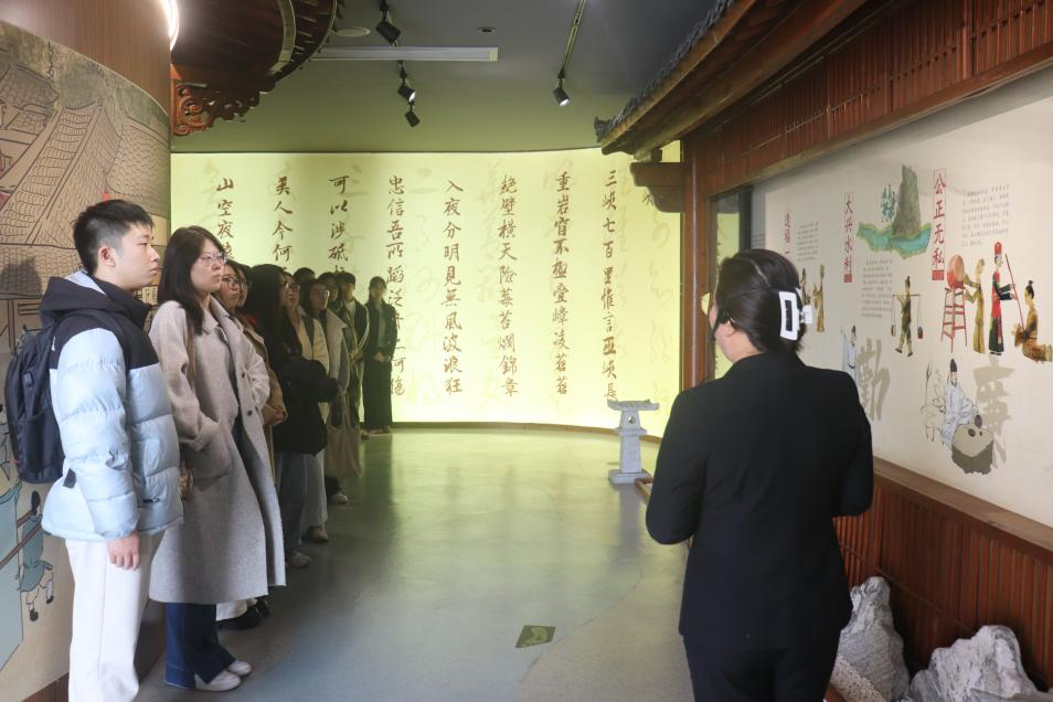 活动首站抵达盈川清廉文化馆。这座以“初唐四杰”之一杨炯为核心的展馆,通过皮影造型、沉浸式体验、体感互动等多元展陈形式,生动还原了杨炯赴任盈川的履职历程。在“因地制宜兴桑蚕”“劈山治水得双盈”“秉公执法严拒贿”等故事的实景演绎中,党员们直观感受到杨炯“能吏”“勤吏”“廉吏”的立体形象;在为民祈雨的沉浸式专区,大家身临其境地体会到其舍身为民的大义担当。