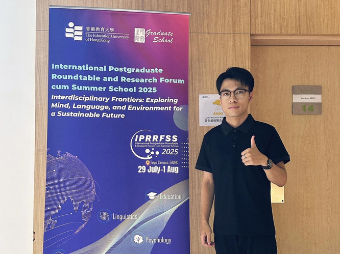 依托香港教育大学卓越的学术平台与丰富资源,吴红德积极投身于一系列学术活动。在香港教育大学举办的“2025年国际研究生圆桌会议暨暑期学校”上,来自全球23个国家和地区的300余名专家学者齐聚一堂。在此,吴红德展示了浙江师范大学与香港教育大学合作开展的“数学教师评估实践优化”研究成果,分享中国数学教师评估能力发展的前沿动态与个人学术思考。该合作研究成果荣获“Outstanding Paper Award”(杰出论文奖),为两校的跨校合作研究赢得国际认可。