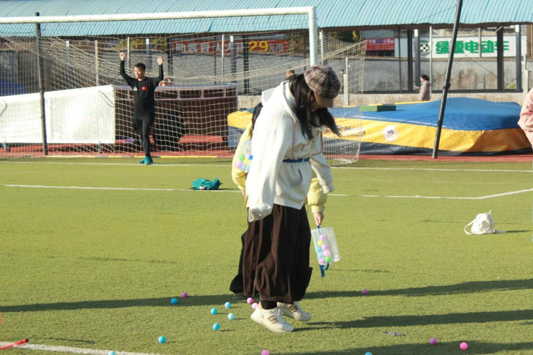绿茵场的另一侧,教师们亦兴致盎然。“一圈到底”配合默契,“运乒乓球”全神贯注,“两人三足”步伐协调。老师们以轻盈身影为赛场注入阵阵欢声与暖意。