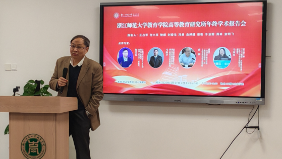会议伊始,浙江师范大学资深教授、浙江省优势特色学科高等教育团队带头人马陆亭教授作开场致辞。他回顾了学院高等教育学科既往的研究重点,明确团队未来将聚焦高等教育创新发展等前沿领域,为研究所的长远发展锚定了方向。