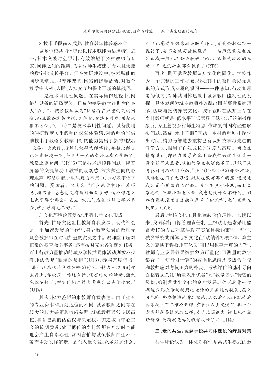 城乡学校共同体建设是促进城乡义务教育优质均衡发展、推进县域教育融合发展的重要抓手,其本质是在追求多主体间和谐共生、协同发展的关系。本研究基于共生理论,以全国范围内首个全省城推进城乡学校共同体建设的浙江省为例,通过对三个案例样本县展开调研,发现当前城乡学校共同体建设面临着共生单元利益价值追求分离,共生意识淡薄;共生能量生成交换受阻,共生模式进阶缓滞;共生环境支持乏力,共生文化生态缺失等现实困境。为此,需凝聚价值共识,激发共生内驱力,强化共生意识;畅通能量生成与交换机制,提高共生耦合度,推动共生模式进阶;增强支持力,营造共生文化氛围,优化共生环境。