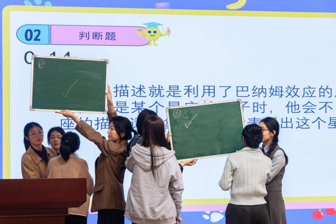 在答题对决环节中,7支队伍分甲、乙两组依次登台比拼。题目兼具理论深度与实用价值,既包括“超限效应”“习得性无助”“情绪ABC理论”等社会心理学经典概念,也涉及“青少年反抗心理”“学习迁移与记忆策略”“心理健康发展顺序”“生物节律与时间管理”等实用知识。