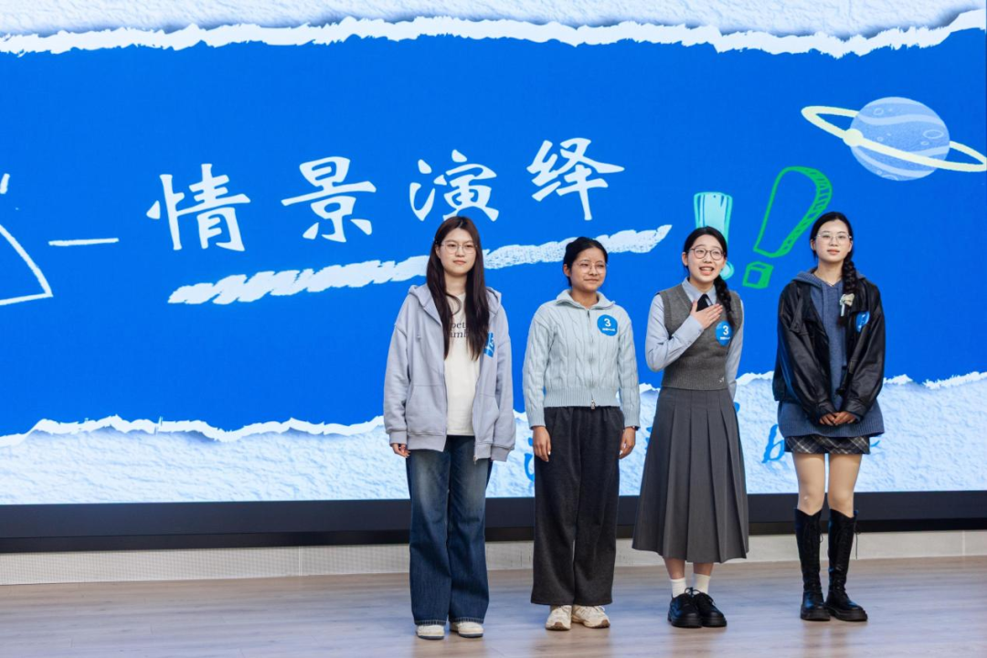 风采展示环节,各参赛队伍创意频出,现场亮点不断。“东方不buy队”以幽默风趣的情景剧传递“拒绝贩卖焦虑”的宗旨;“疯狂星期四队”的四位队员来自不同省份、成长背景各异,正如“人际吸引效应”般彼此取长补短;“深藏blue队”以“蓝色”为意象,将冷静与谦逊态度融入对心理知识的专业理解中;“读心专家队”高呼“以心育人,以爱同行”,展现向阳成长的教育情怀。