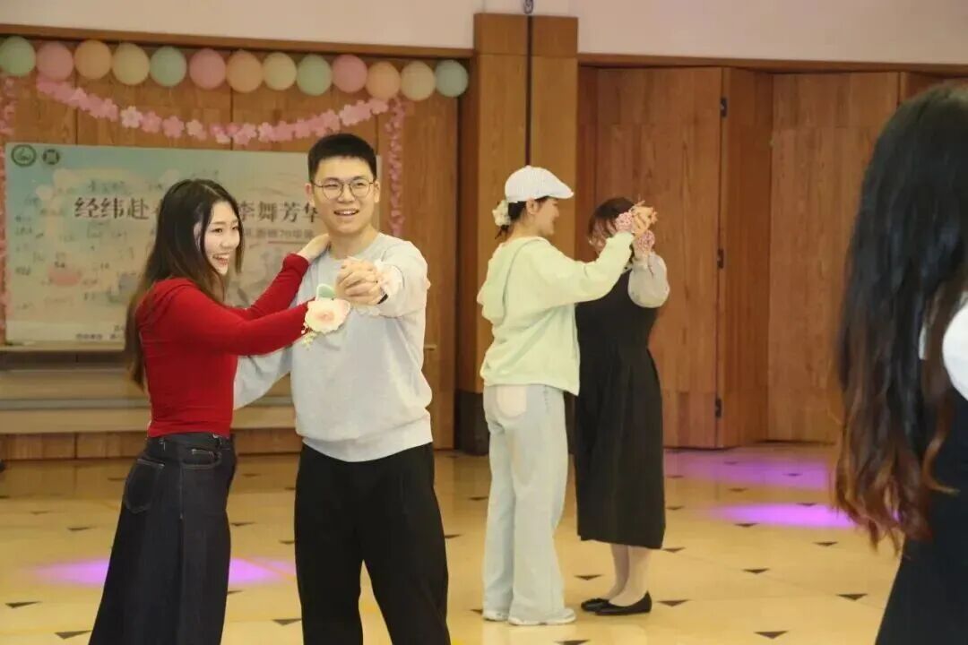 以舞为媒,共赴春约。华尔兹的韵律不仅搭建了互动舒心的美育平台,更彰显了教育学子昂扬向上的青春姿态。春日的校园因这场“桃李之约”而更添温情,学子们亦在旋转配合间,镌刻下献给母校七十华诞的专属记忆。美好不落幕,青春正当时!