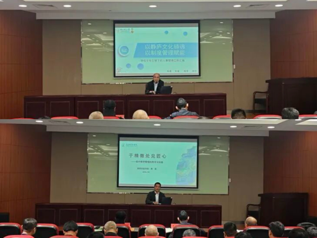 4月21日,秀洲区教育体育局举办2026年春季学期第二期“美好优学大讲堂”,特邀浙江师范大学附属秀洲实验学校校长黄水林、浙江师范大学附属高照实验学校书记周高作经验分享。